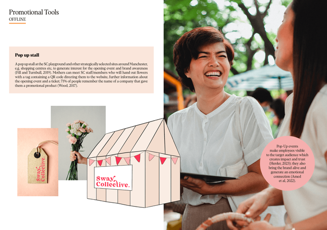 Sway Collective is a collaborative, creative, community-driven service brand which aims to help women achieve their entrepreneurial goals whilst balancing their childcare responsibilities. Sway Collective is the first brand to combine the practical childcare support entrepreneurial mothers need to succeed alongside the equally vital professional and emotional support (Irvine et al, 2020; Deloitte, 2016).